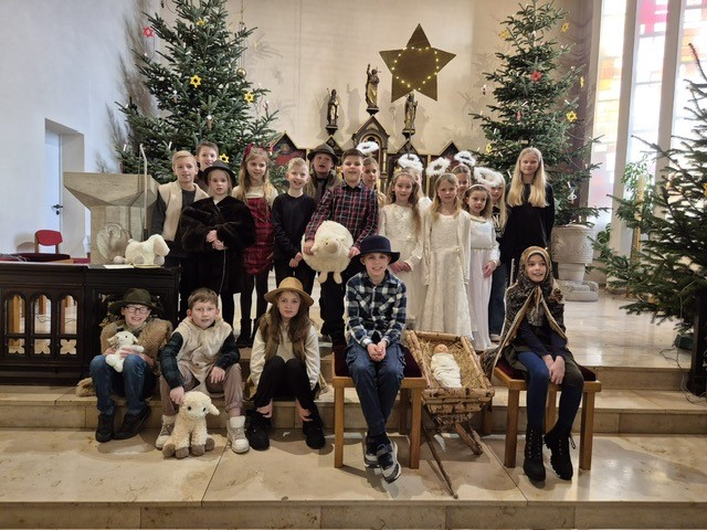 Seit einigen Jahren führen Kinder der Michaelschule Tinnen zu Heiligabend im Rahmen einer kleinen Feier ein Krippenspiel in der Marienkirche auf. Insgesamt zwanzig Schülerinnen und Schüler beteiligten sich in diesem Jahr. Sehr anschaulich erzählten und spielten sie die beschwerliche Reise von Maria und Josef nach Bethlehem, die verzweifelte Suche nach einer Unterkunft, die Geburt Jesu, das Erscheinen der Engel auf dem Hirtenfelde und den Besuch der Hirten an der Krippe. Ergänzt wurde die kindgerechte Darbietung durch Solo-Gesangseinlagen sowie durch einige bekannte Weihnachtslieder, die gemeinsam mit allen Besucherinnen und Besuchern gesungen wurden. Das Krippenspiel stellte eine gelungene Einstimmung auf das bevorstehende Weihnachtsfest dar.