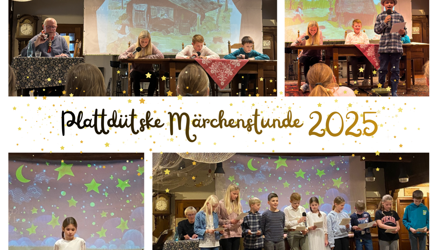 Darüber hinaus trugen Mitglieder des Heimatvereins lustige Dönkes auf Platt vor. Als verdiente Belohnung für ihre gelungenen Darbietungen erhielten alle Mädchen und Jungen kleine Präsente, überreicht durch Heinz Menke, der den Arbeitskreis „Mundart und Brauchtum“ mit viel Herzblut leitet. Darüber hinaus wurden im Verlauf der plattdütsken Märchenstunde Spenden für die Fördervereine der beiden beteiligten Schulen gesammelt. Diese Einnahmen stellen eine wunderbare finanzielle Unterstützung für weitere schulische Projekte und Aktivitäten dar. Allen Beteiligten hat die Vorbereitung und Durchführung des Märchennachmittags große Freude bereitet. Das Interesse an der plattdeutschen Sprache ist groß und spornt alle Beteiligten dazu an, weitere gemeinsame Projekte zu verwirklichen.