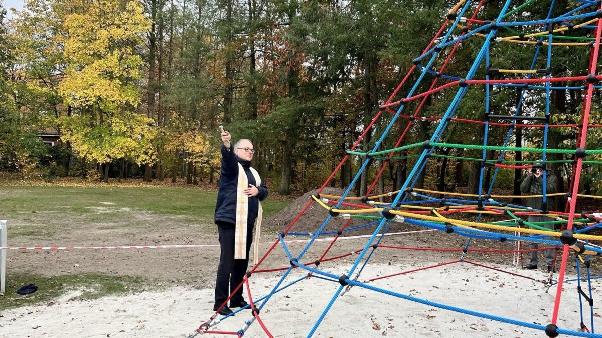 Pastor Tobias Kotte segnete die neue Kletterspinne und wünschte den Kindern „viel Freude und stets unfallfreies Spielen“. Bei Kaffee, Kuchen und fröhlichen Gesprächen klang die Feier bei strahlendem Sonnenschein in gemütlicher Atmosphäre aus.